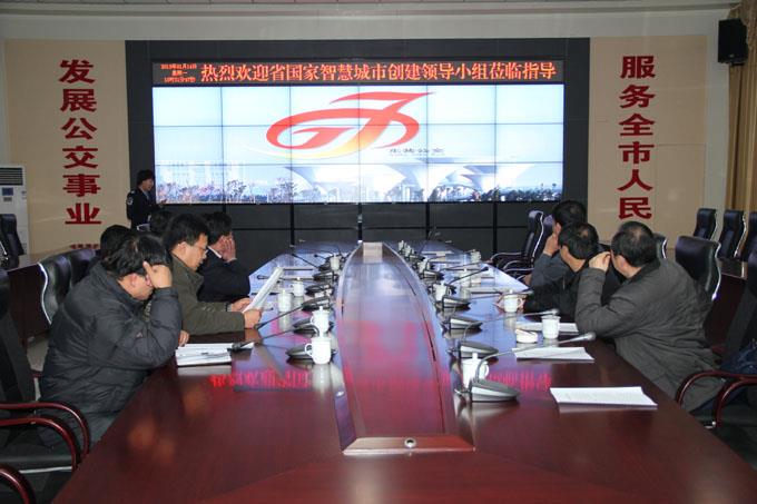 我市申報的國家智慧城市規劃綱要、實施方案等申報材料已經通過初審,此次現場考察主要是考察我市三網覆蓋情況、數字化城市建設情況、智能交通建設情況、平安城市建設情況以及云計算中心建設情況。考察組來我公司主要是考察公交智能化建設情況,聽取了工作人員的現場講解演示及智能化公交建設情況匯報。