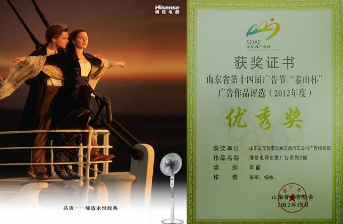 在第四屆山東文化創意產業博覽交易會廣告創意大賽中,市公交公司廣告部張瑞文設計的作品《凳子》獲得優秀獎;在山東省第十四屆廣告節“泰山杯”廣告作品評選中,張瑞文設計的作品《老婆同時看上啦》以及楊棟設計的海信電器創意廣告系列作品同時獲得優秀獎。