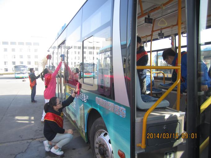 3月15日上午,市公交公司汽車一隊聯(lián)合東營市職業(yè)學院開展了學雷鋒活動。來自該校經濟貿易與管理學院的大學生和車隊職工共計28人,分兩個小組,一組乘坐公交車上路為特需乘客服務,幫助疏導乘客;一組幫助駕駛員擦拭車身,清掃車廂衛(wèi)生。大家工作起來井然有序,有條不紊,尤其活躍在車廂為乘客服務的志愿者們,更是得到了乘客的一致好評,成為公交車上一道亮麗的風景。