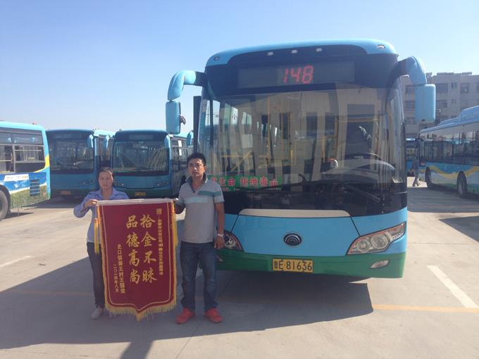 9月3日,家住東營區(qū)史口鎮(zhèn)寨王村的王國梁先生乘坐148路車外出,下車后發(fā)現(xiàn)錢包遺忘在公交車上。汽車四隊駕駛員郭嘉撿到了王國梁先生遺失的錢包,發(fā)現(xiàn)內有身份證、銀行卡、現(xiàn)金一萬二千余元,忙將其上交車隊暫時保管,車隊及時聯(lián)系失主并將失物完璧歸趙。王國梁接過失而復得的錢包顯得意外而又驚喜,執(zhí)意要給公交車駕駛員郭嘉師傅酬金3000元表示感謝,被她婉言謝絕了。翌日,王國梁拿著一面寫有“拾金不昧、品德高尚”的錦旗來到車隊,感謝郭嘉師傅拾金不昧的高尚品德。