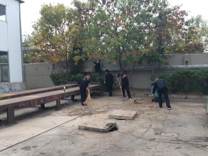 衛生大掃除中,他們或三人一伙,或五人一組,有的負責修剪參差不齊的綠化帶,有的負責清理枯黃的雜草,有的負責拿著垃圾袋拾撿煙頭,有的負責清掃被風卷到墻角的垃圾,有的負責裝卸和拖運垃圾箱,一個個忙的滿頭大汗,即使飛揚的塵土沾滿了衣服也全然不顧,令人為之動容。