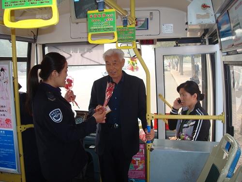 九九重陽節當天,市公交公司8路車組的駕駛員們自費購買了鮮花送給沿途上車的老年乘客,為他們奉上一份溫馨的祝福。