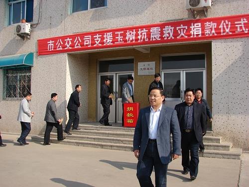4月24日上午,市公交公司舉行了支援玉樹抗震救災捐款儀式。