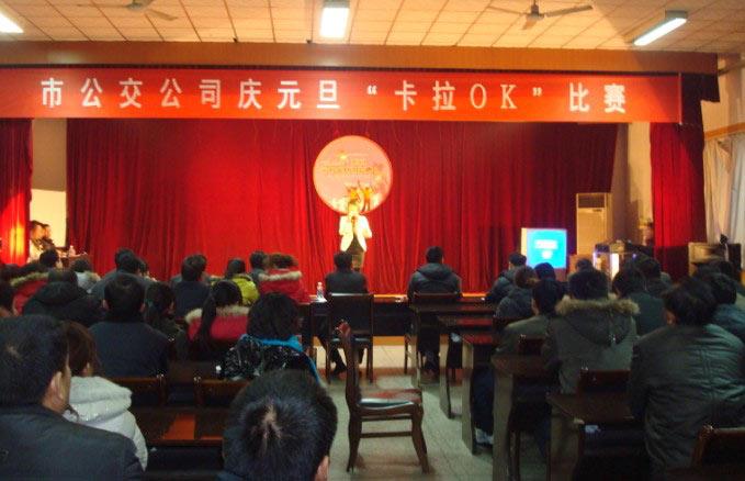 在2011年元旦來臨之際,為了豐富職工文化生活,倡樹公司健康向上的文明形象,展示公交職工意氣風發的精神面貌,市公交公司于12月30日晚舉辦了“慶元旦”職工卡拉OK比賽。本次比賽共有12名選手參賽,在長達近兩個小時的比賽中,現場氣氛異常火爆熱烈,歌聲不斷,掌聲不斷,參賽的選手既表達了對公交事業的熱愛,也展示了較高的藝術水準和團結向上、奮發進取的精神風貌。經過緊張而又激烈的角逐,最終,陳寶華獲得一等獎,季明楠、王汝剛獲得二等獎,曹濤、王楠、張振玲獲得三等獎。此次比賽在歡樂和諧的氣氛中落下帷幕。