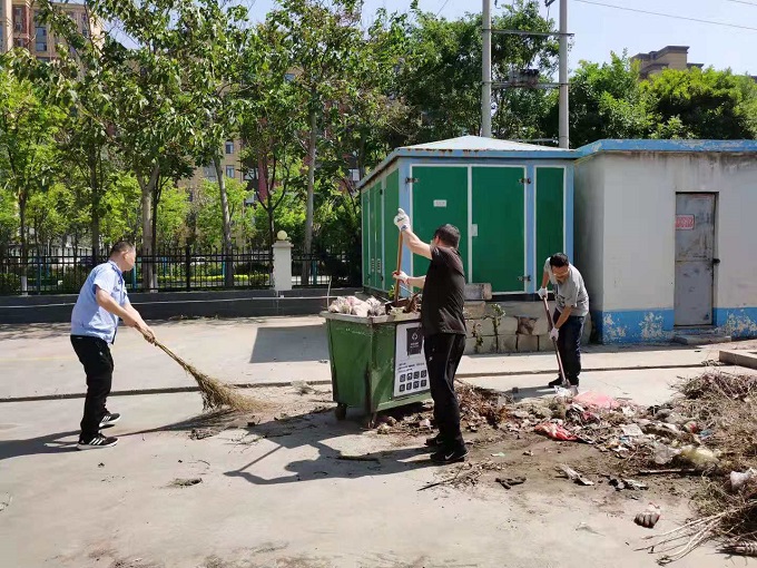 為喜迎建黨100周年,加強院落環境衛生治理工作,2021年6月4日下午兩點半,市公交公司汽車七隊支部委員會全體黨員在黨史教育集中學習結束后,由支部書記李首勇同志帶頭對車隊駐地院落內的綠化帶、停車場、辦公樓周邊以及各衛生死角進行了徹底清掃。雖然天氣炎熱風大,但是同志們不畏辛苦,干勁十足,個個爭先,經過近兩個小時的共同努力,院落死角內的枯樹枝、雜草、塑料袋、廢紙屑、污泥等垃圾雜物被完全清理干凈并集中裝進了垃圾桶,車隊院落衛生面貌煥然一新。