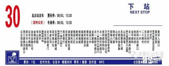 30路公交車路線:公交西站西 至 黃河入???,發車時間:08:00、13:30(夏秋季)08:00、13:30(冬春季)。