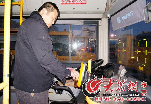 24日上午6時40分左右,王濱熱好了自己的私家車,開往東營市公交公司汽車四隊。王濱說,“今天沒輪到我值早班,要是輪到6點首發的時候,凌晨5點多就出門了。”